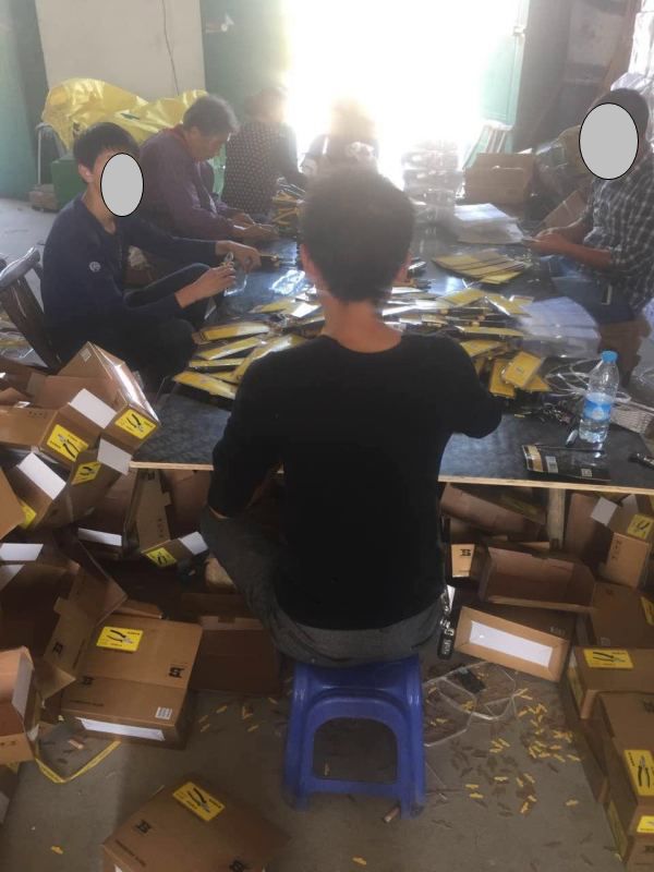 7月5日,枣阳市公安、工商以及新市镇派出所一行共计19人,前往现场查处。发现该窝点一楼是生产场所,二楼为主人住宿的地方。执法人员马上控制了窝点负责人李某及其老婆,现场查获各类假冒五金工具20000多个,包装袋和包装盒30000多个,总价值45万左右。另,执法人员还现场查获涉案金额数百万元的销售记录清单等。