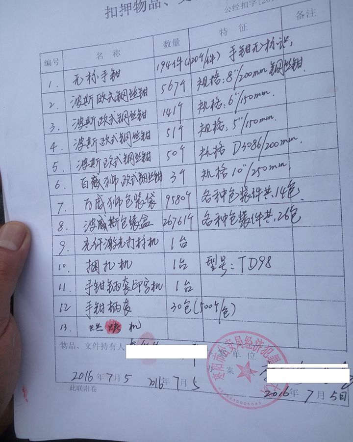 2016年5月15日,“商业秘密网”接到举报:江苏张家港市广源五金工具有限公司法人马某和浙江义乌神狮工具负责人欧某等,私自生产和销售波斯、百威狮等名牌五金工具。经过历时一个月的调查取证,终于在广源五金法人马某的老家(湖北省枣阳市新市镇李楼村)发现造假窝点。