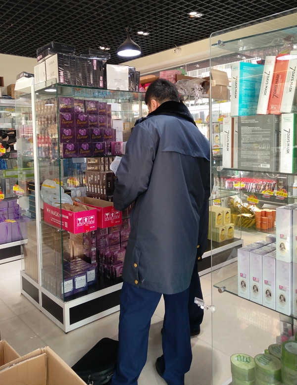 考虑到马上要放假了,企业远道而来,打假之心情又比较急,福田市场监管所抽调其他中队的力量,于次日在北下朱微商货源批发市场锁定了6家涉嫌售假店铺(另两家未开门)。经过蔻辰公司工作人员现场鉴定,执法人员对涉假商品清点装箱后全部予以查扣。