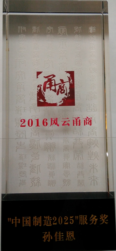 这次,董事长孙佳恩上台领取了“中国制造2025”服务奖。组委会给出的颁奖词是: