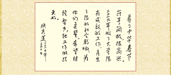 中华春节符号全球征集活动组委会名誉主席、第十届全国人大副委员长顾秀莲寄语