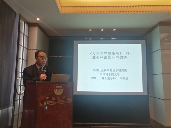 (中国社会科学院研究员、教授、日本分联盟专家李顺德就《反不正当竞争法》中商业秘密部分的最新修改内容作演讲。)