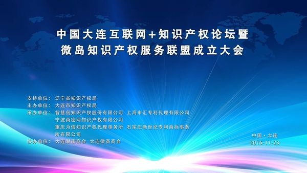 2016年11月23日,由大连市知识产权局为主办单位、辽宁省知识产权局为支持单位的“中国大连互联网+知识产权论坛”暨微岛知识产权服务联盟成立大会在大连市隆重举行,大连电视台晓颖主持。