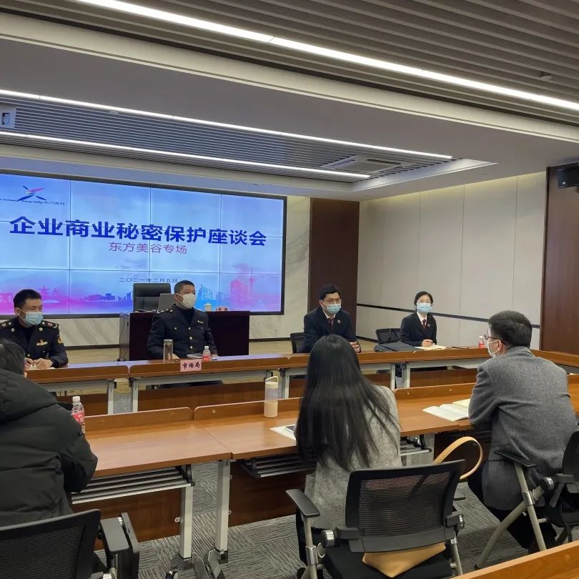 “贤知卫”团队多次赴区东方美谷产业园区就企业商业秘密保护进行走访、座谈,就企业在商业秘密保护中遇到的问题、难点进行探讨交流,收集相关线索,听取企业需求。同时,以“企业商业秘密保护及风险应对”为主题向15家重点企业宣讲授课,分发商业秘密保护宣传手册,并同步网络直播。