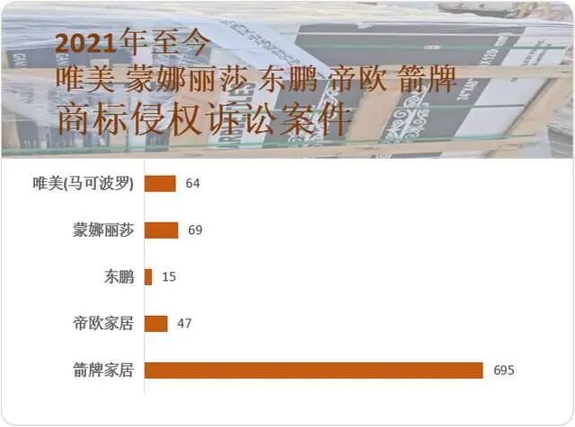 据不完全统计,2021年至今,马可波罗、蒙娜丽莎、东鹏、帝欧、箭牌5家陶企关于商标侵权、专利侵权的等诉讼案件就超过了890宗。