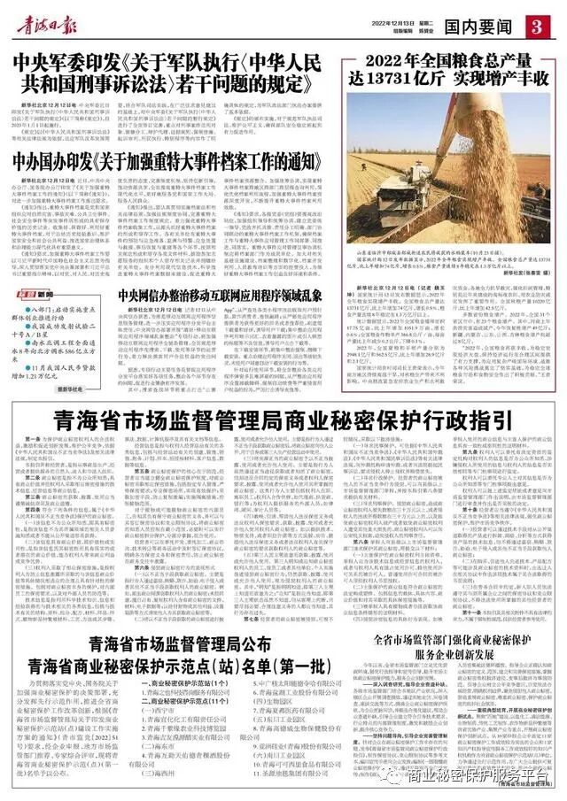 《青海日报》(2022年12月13日 第3版:国内要闻)