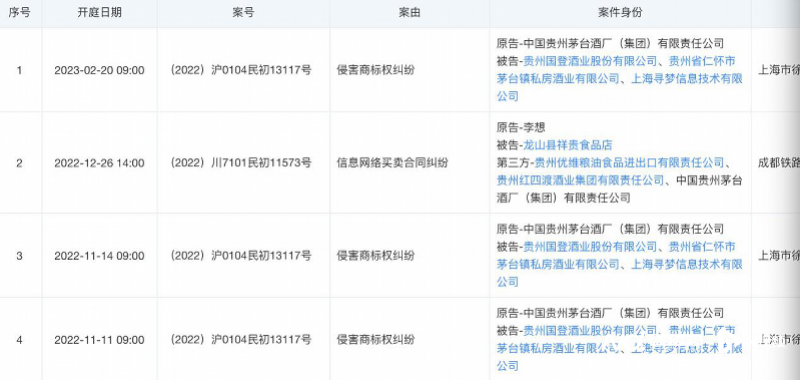 近日,天眼查显示,据上海市徐汇区人民法院,中国贵州茅台酒厂(集团)有限公司(以下简称“贵州茅台”)起诉贵州省仁怀市茅台镇私房酒业有限公司,贵州国登酒业有限公司,上海寻梦信息技术有限公司一案将于2月20日开庭审理。案由为侵害商标权纠纷。 这并非贵州茅台第一次起诉电商平台。早在2019年,贵州茅台起诉电商平台上多个售假商家,并最终打赢官司,获赔12万。 多个商家销售包装相似茅台酒被判侵权 上海市徐汇区人民法院此前公布的信息显示,上述案件的开庭日期分别为2022年11月14日、11月11日。有业内人士称,或因疫情而改期,也可能因案件复杂而第三次开庭审理。 据了解,私房酒业成立于2010年,法定代表人为陈茂,持股比例60%。上海寻梦信息技术有限公司法定代表人为朱健翀,最终受益股份为13.43%。 此次案件的当事人并非第一次交锋。2019年6月11日,中国裁判文书网公布的判决书显示,多个商家在某电商平台上销售的“茅台贵宾酒”“飞天接待酒”“茅台内供酒”与“贵州茅台酒”包装相似,部分产品的酒箱及包装袋上有“贵州茅台”字样。最终,法院一审判决商家停止对贵州茅台多个商标的侵权行为,该电商平台停止为其提供平台销售服务。 在电商平台搜索“茅台”发现,53度飞天茅台1公斤装售价近6000元,已售出2.5万件。此外,也有商家标示“内部招待酒”“茅台镇国酱酒”等,包装、飘带与贵州茅台相似,售价却低至不足20元。 茅台重金打假,加码自营电商 万亿市值的贵州茅台近年来开启全链条打假。据相关媒体报道,贵州茅台此前在一起官司中曾多次提及,每年花费在防伪、打假方面的各项支出高达2亿多元,假冒伪劣产品的侵权行为严重影响自身品牌形象。 据了解,贵州茅台设有专门打假办公室,并有上百支打假队在各省进行监督。值得关注的是,去年,万亿市值的茅台重启电商,数字营销平台“i茅台”去年3月底推出后,且所销售的产品均由厂家自营,消费者可平价购买茅台产品,备受关注。 直营渠道也提升贵州茅台利润。去年前三季度财报数据显示,贵州茅台直营渠道收入为318.81亿元,占当期营收的36.57%,同比去年同期大幅增加117.09%。其中,今年3月31日试运营的“i茅台”,在今年前三季实现酒类不含税收入约84.62亿元,为贵州茅台贡献超26%的收入。