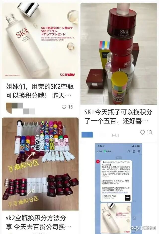 据了解,目前消费者可以将使用过后的SK-II产品空瓶通过SK-II线下指定专柜进行回收,每瓶空瓶可以获得相应积分。自7月1日起,SK-II该计划扩展到所有中国门店。