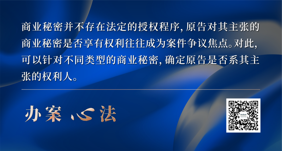 商业秘密并不存在法定的授权程序,因此,原告对其主张的商业秘密是否享有权利往往成为案件的争议焦点。对此,实践中可以针对不同类型的商业秘密,确定原告是否系其主张的商业秘密的权利人。对于技术信息,可以根据研发记录、实验数据等证据进行审查判断;对于经营信息,可以根据合同、交易记录等证据进行审查判断。近年随着数字技术的发展,多数在研发过程中形成的技术信息,以及在商业活动中形成的经营信息均存储于公司的特定软件系统中。原告如在诉讼中可以对此进行举证证明,则在无相反证据的情形下,可以认定原告就其主张的商业秘密享有权利。